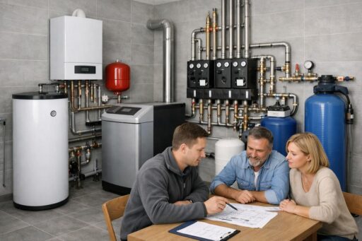 Среди основных вариантов — газовые, твердотопливные, электрические и пеллетные котельные, а также комбинированные (резервные) схемы. Газовые котлы остаются самым распространённым и экономичным вариантом при подключении к сети магистрального газа. Твердотопливные и пеллетные установки подходят для участков без газа, но требуют места для хранения топлива и регулярного обслуживания. Электрокотлы просты в монтаже и управлении, но могут оказаться дороже в эксплуатации при больших теплопотерях дома. Комбинированные решения позволяют сочетать преимущества разных источников топлива и повышают надёжность системы.