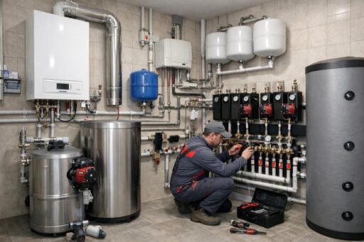 В пакет комплексных работ обычно включают проект, поставку оборудования и монтаж. Также выполняем пусконаладку, гидравлическую балансировку и оформление актов. В сервисный контракт добавляем периодические осмотры и приоритетные выезды.